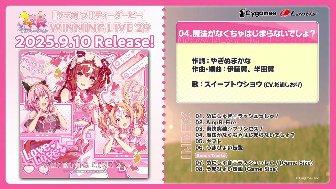 - 2025.08.22 『ウマ娘 プリティーダービー』WINNING LIVE 29 発売記念イベント開催決定!